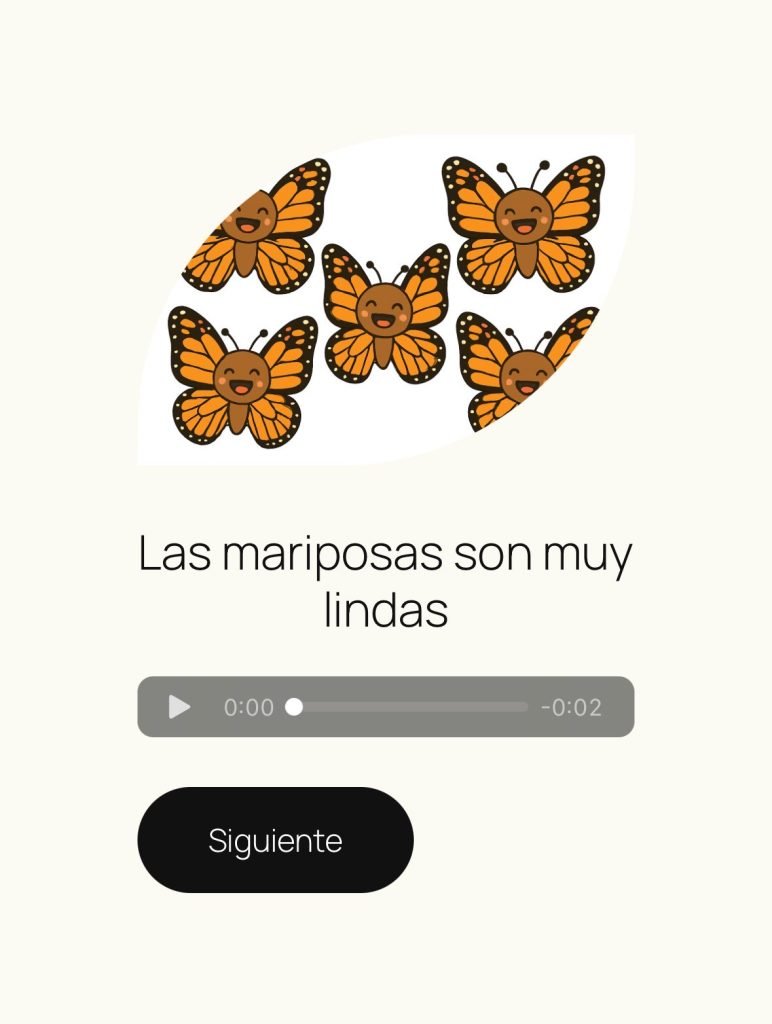 Nuestra plataforma ofrece una amplia gama de ejercicios de audio, diseñados para ayudar a los niños con la articulación, la fluidez y la conciencia fonológica.